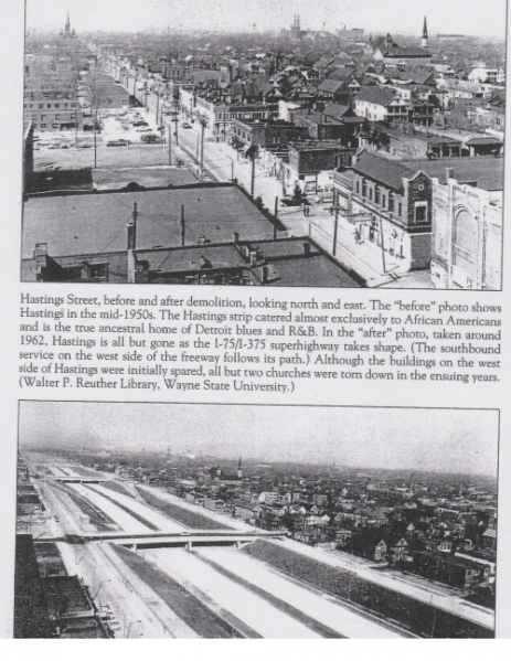 Hastings Street and the Black Bottom neighborhood in Detroit. Before and after demolition